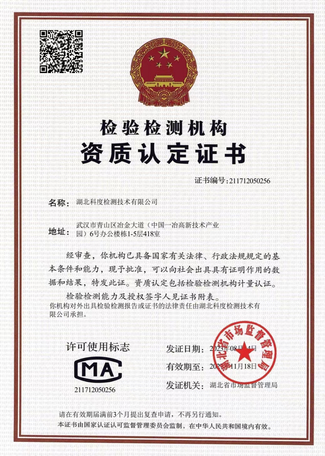 湖北科度檢測技術有限公司是一家專業從事環境類及相關領域檢測的第三方檢測機構,公司已通過湖北省市場監督管理局CMA計量認證,可以面向社會出具權威CMA檢測報告。 我公司實驗室嚴格按照國家標準建設,擁有一大批國內外先進儀器設備及現代化配套設施,并有經驗豐富的中高級專業技術人員和嚴格的實驗室質量保證體系為項目運作提供強力支撐。 作為第三方檢測機構,公司始終以高度的社會責任感經營企業,以“公正、嚴謹、高效”為宗旨,依托專業的技術實力為客戶提供專業優質檢測服務,受到政府、企業和社會各界的廣泛關注和認可。